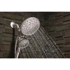 - On/off sprayer saves water and the water flows only when lever is pressed, never from showerhead when hose is attached