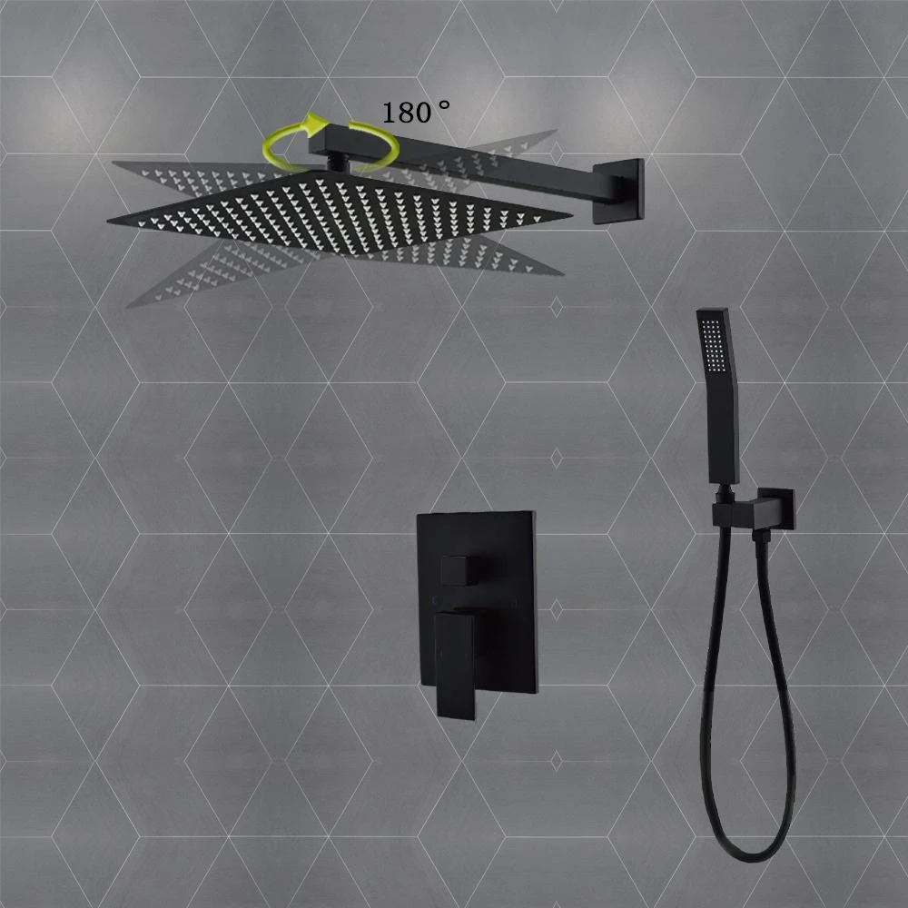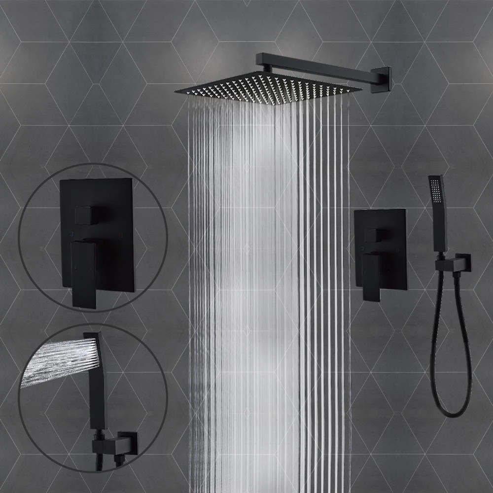This pressured balanced shower kit provides affordable luxury with a sleek, modern design and long-lasting durability. Wall mounted shower system with high pressure rainfall shower head. Handheld shower head and shower faucet rough-in mixer valve, bathroom luxury rainfall shower combo set, black 10 in.
