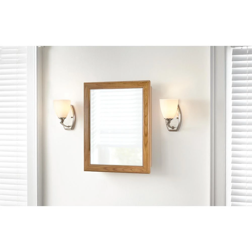 Add a classic look to your bathroom or powder room with this Glacier Bay Framed Recessed or Surface-Mount Bathroom Medicine Cabinet. The adjustable shelf offers ample storage flexibility, while the Wood Composite frame provides exceptional durability and strength. Double shelf pegs enable you to customize your space quickly and easily. Can be mounted to open left or right. Fully assembled for your convenience.
