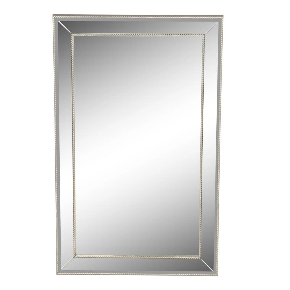 - Elegant beveled mirror accented with inlaid champagne / silver beading