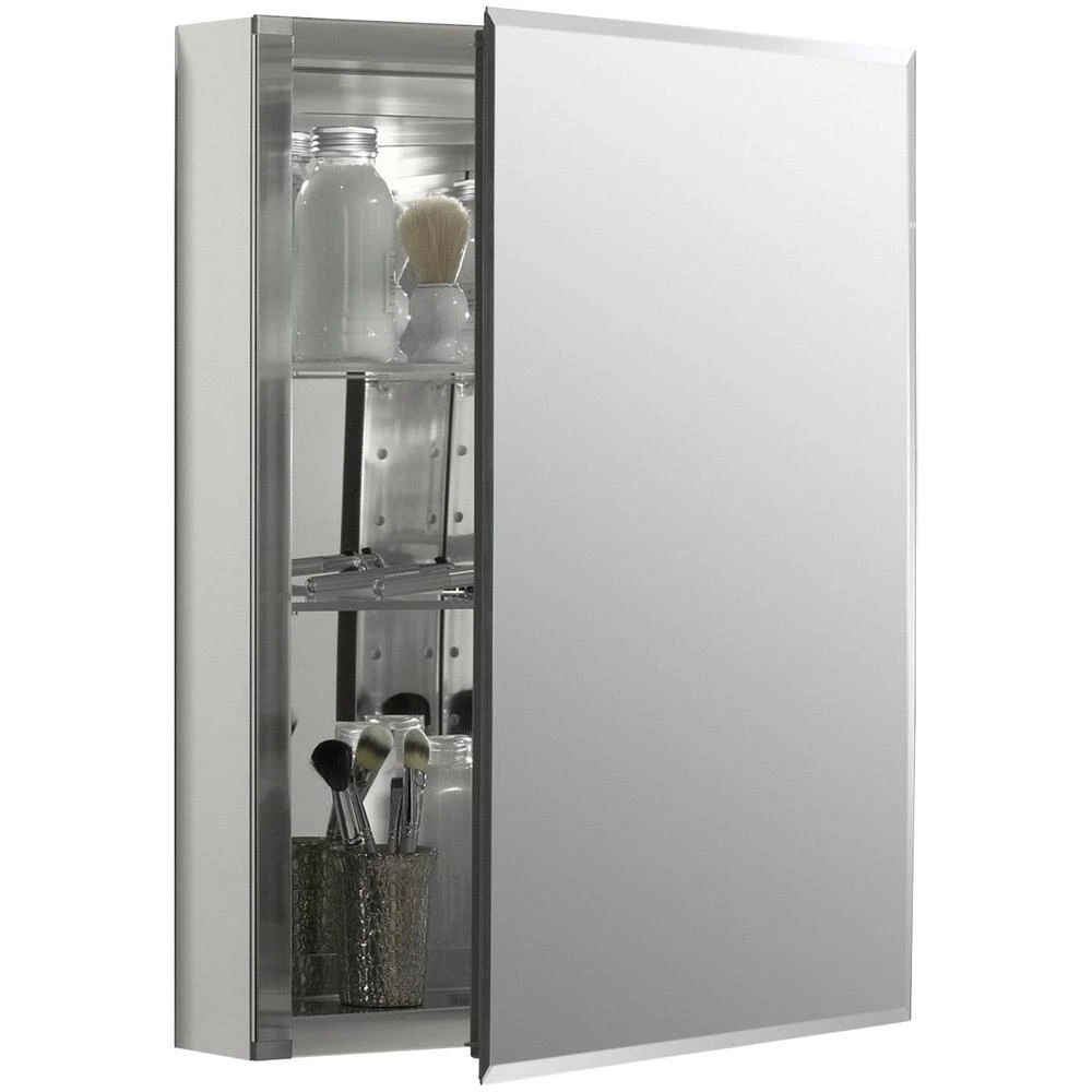 With mirrored surfaces inside and outside, this 20 in. frameless medicine cabinet helps you put your best face forward. The mirror on the front door features a beveled edge for enhanced style. Inside, adjustable glass shelves easily accommodate your toiletries.