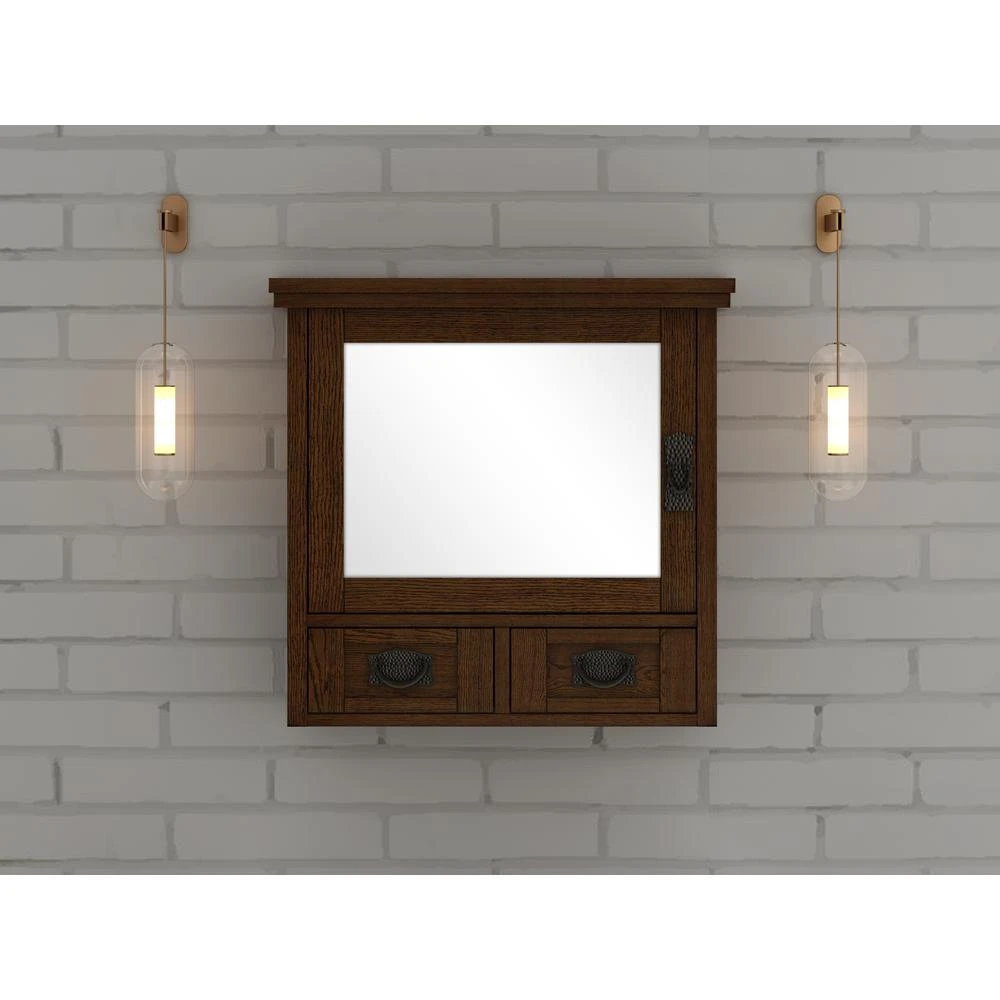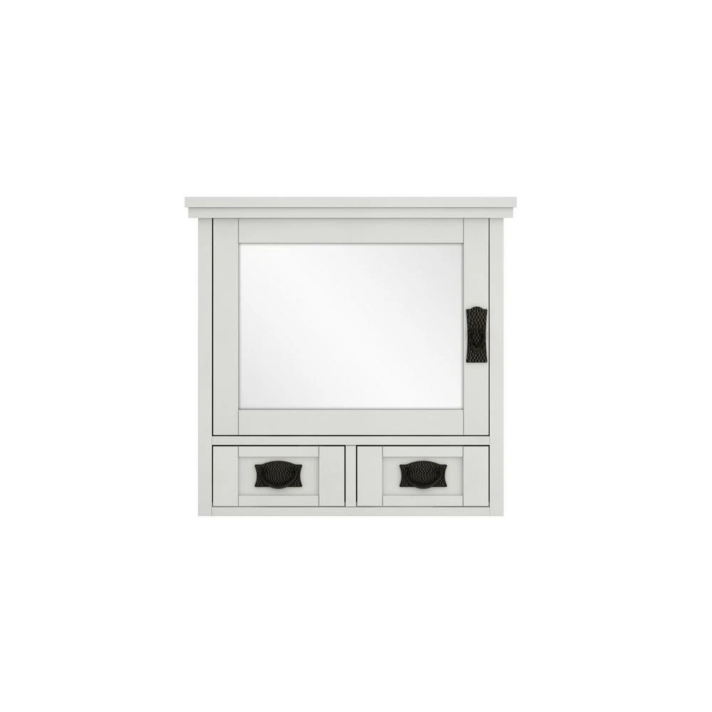 Sometimes there are more toiletries than counter space. If that’s the case in your bathroom, try our Artisan Surface-Mount Medicine Cabinet over your vanity. With its 2-small drawers and adjustable interior shelf, this medicine cabinet is the optimal spot to keep morning prep necessities like makeup, hair products and perfume neatly stowed yet accessible. Simple top molding, recessed drawer panels and side fluting give this mirrored cabinet an Arts and Crafts aesthetic. Finished in crisp white, this bath mirror is perfect for a variety of decorating concepts.