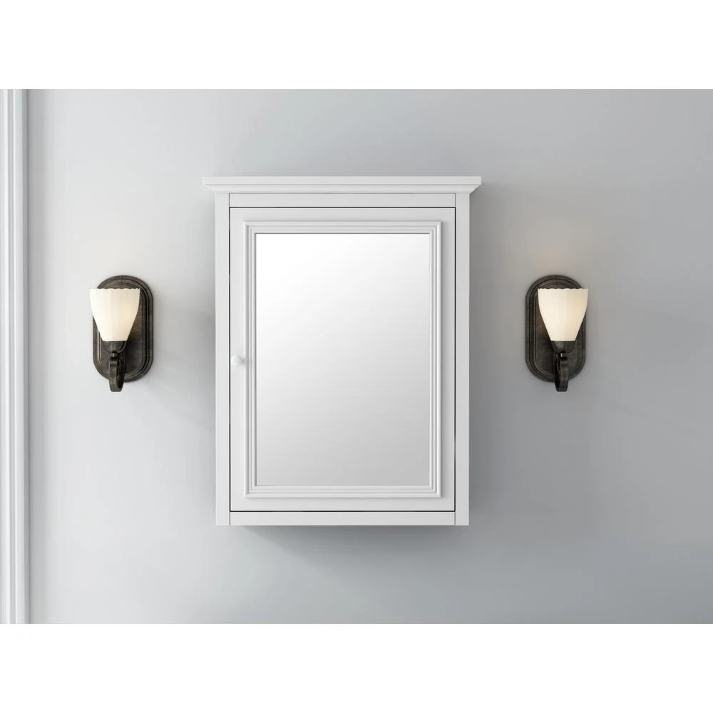 Acting as bathroom mirror and bathroom medicine cabinet, a bathroom mirror cabinet is an efficient use of space. Our Fremont Mirror Wall Cabinet serves both functions with finesse. Elegant crown molding is complemented by molded trim around the mirror. Inside, 3 shelves stand ready for your medicine, toiletries and other supplies. This wall cabinet saves space in a smaller prep area and offers convenient extra storage in a larger bathroom.