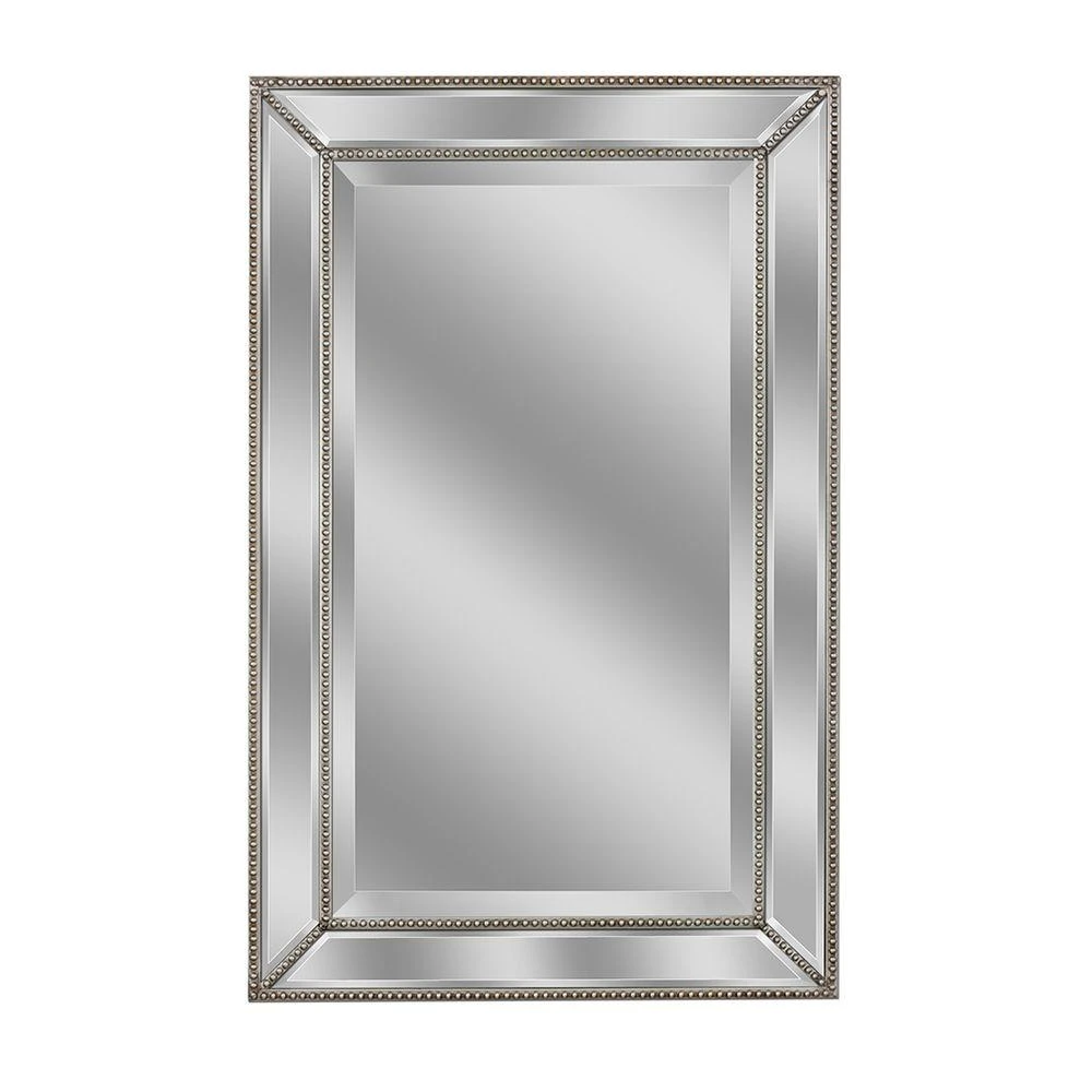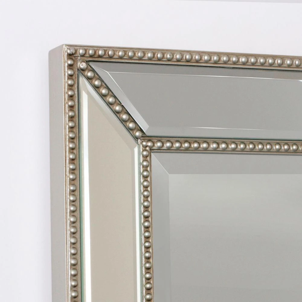 Victorian goes modern and classic never goes out of style. This beautifully hand crafted prism beveled mirror features quarter inch champagne beading inlaid between mirrored sections. Frame body finished in matching champagne silver finish. A timeless creation that compliments entries, bath and other focal points of your home.