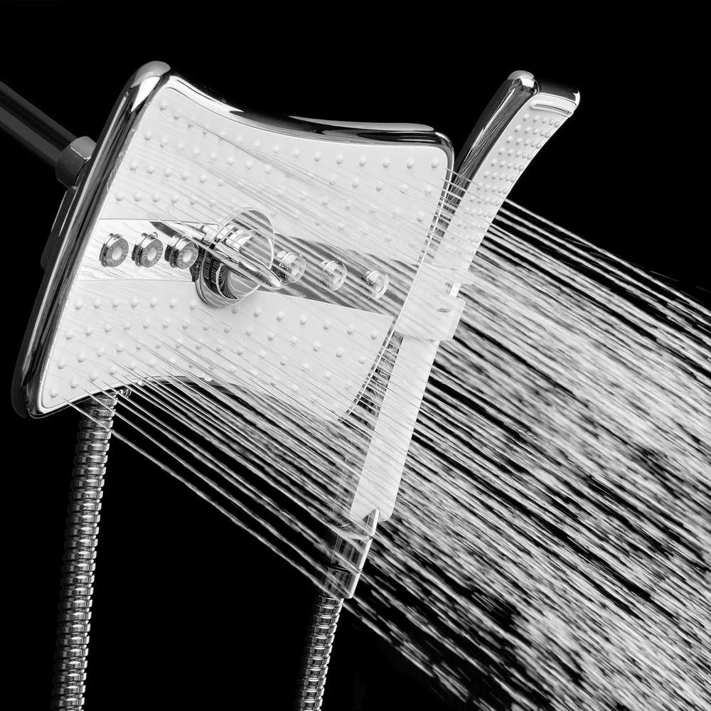 Change your shower experience with the 9 in. AKDY SH0131 shower head and wand combo. Utilizing a rainfall style main head coupled with massage jets that are accessible at the turn of a knob, this shower head is sure to be a welcome addition in your bathroom. A removable handheld shower wand with rain and waterfall style options is accessible at the flick of a switch. With 124 and 61 nozzles on the main and handheld shower heads, this combo is sure to please. Formed from ABS thermo material, it is capable of handling nice hot showers. Using 1/2 in. standard sizing, this model is perfect and easy to use. Furthermore, this showerhead is covered by a one-year warranty.