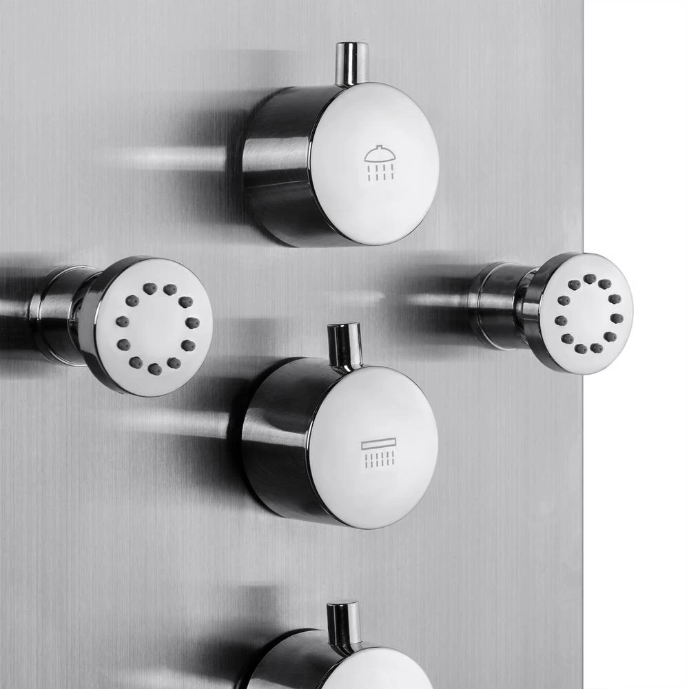 Utilitarian by design and ultra-durable, our large 65 in. stainless steel shower is fit for a king. 8-high-powered body spray jets provide a relaxing and soothing shower with the added convenience of being angle adjustable. An angle adjustable overhead shower provides a gentle rainfall shower. A matching hand shower with extra-long hose ensure you get to all the hard reach places with ease.