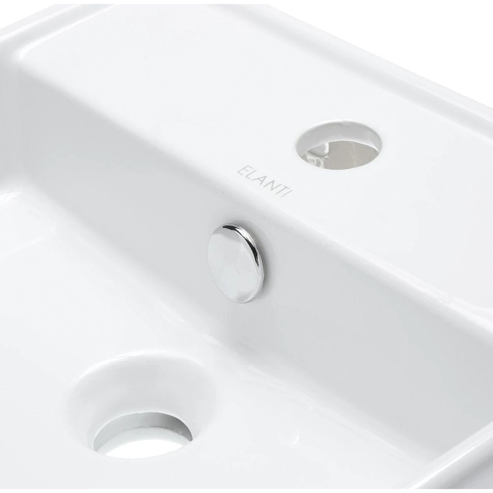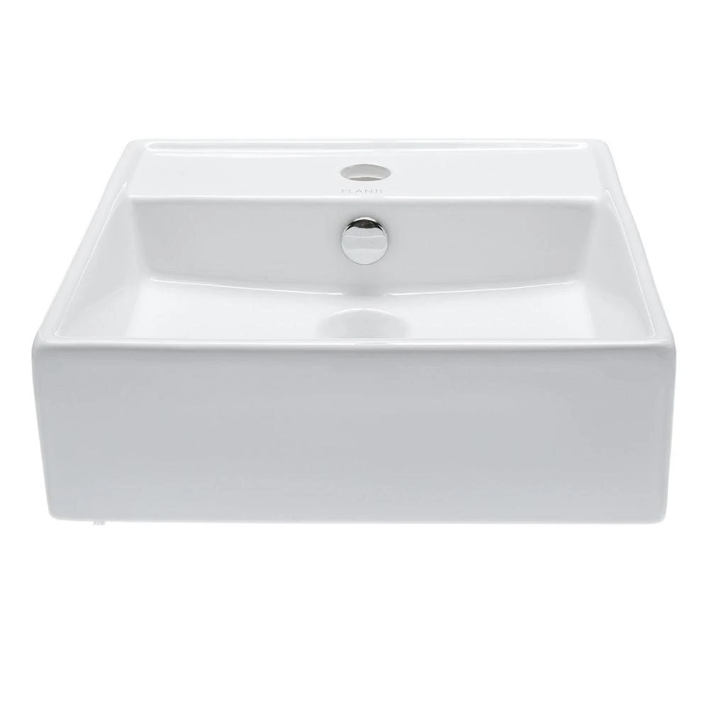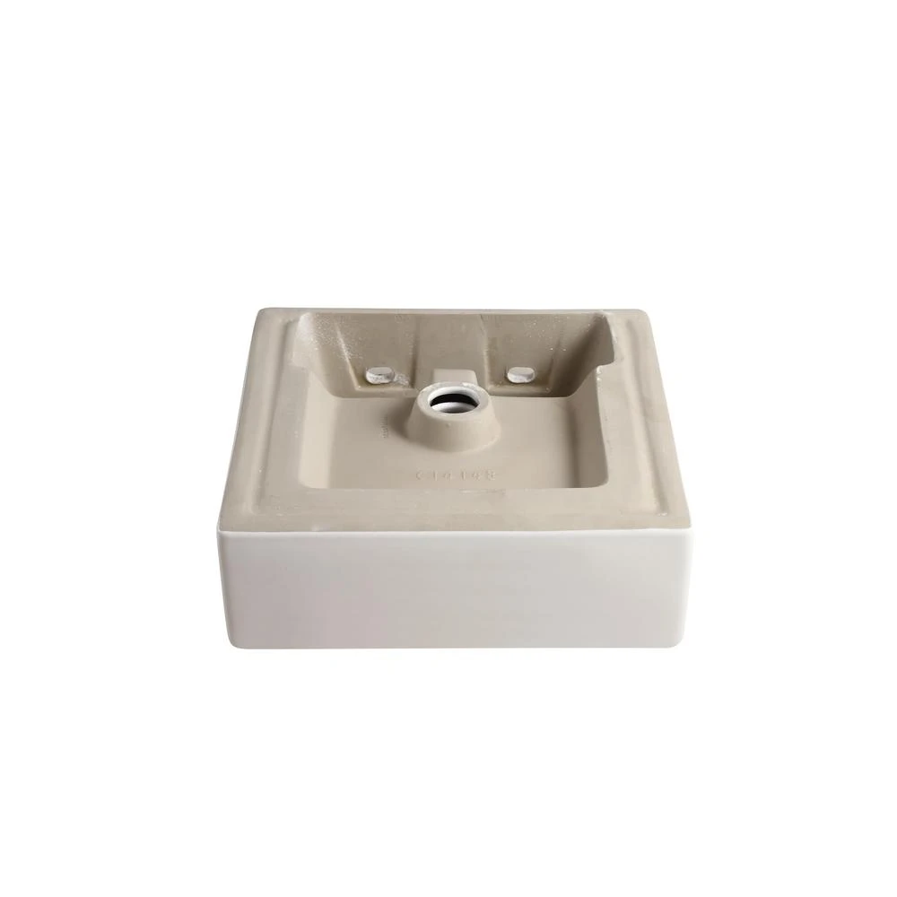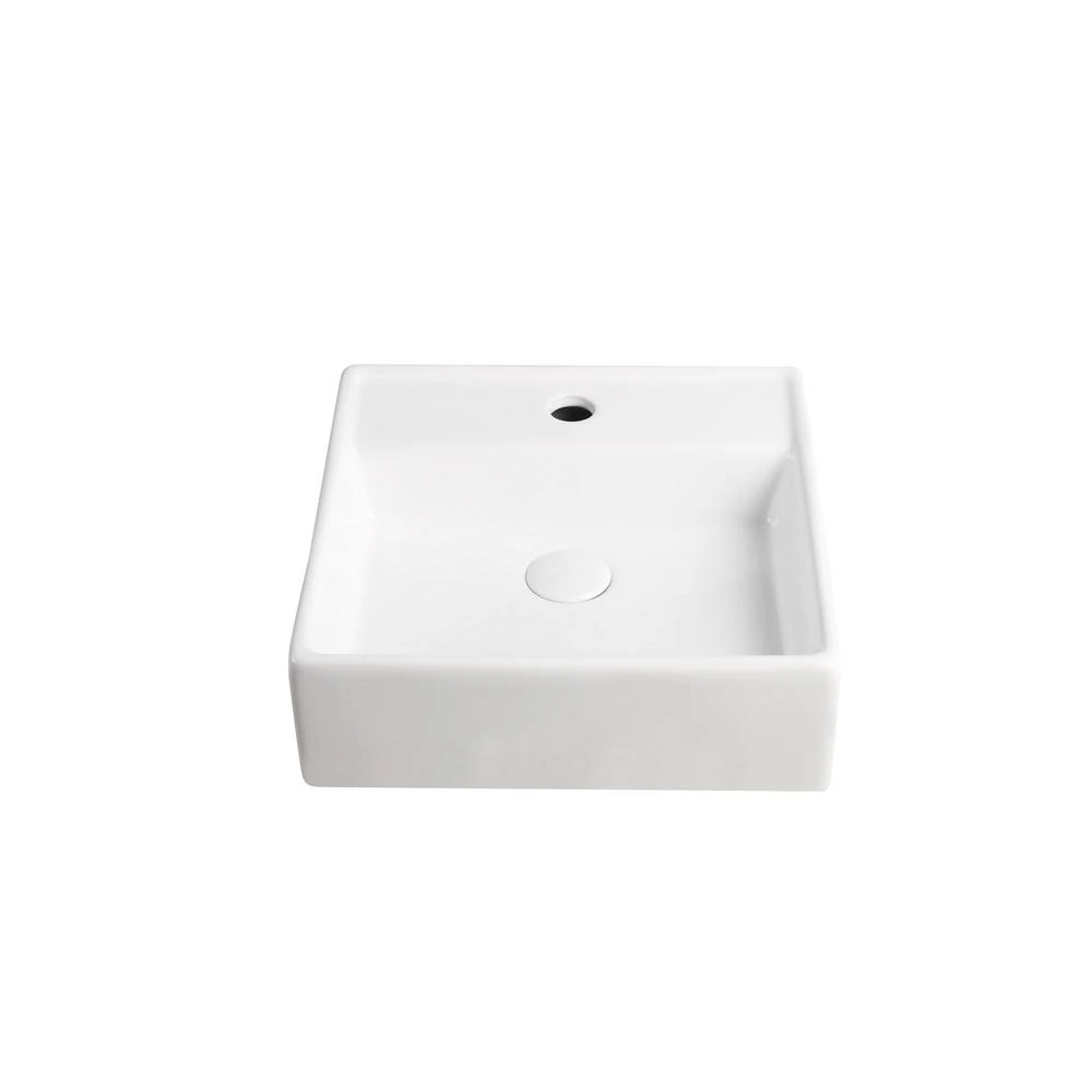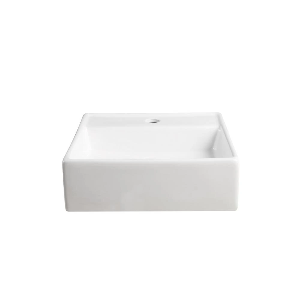 The straight lines of this classic square white porcelain sink fit in any decor. This is a square, wall-mounted white porcelain compact design that can easily fit in small spaces. Installation bolts included, drain and faucet are not included.