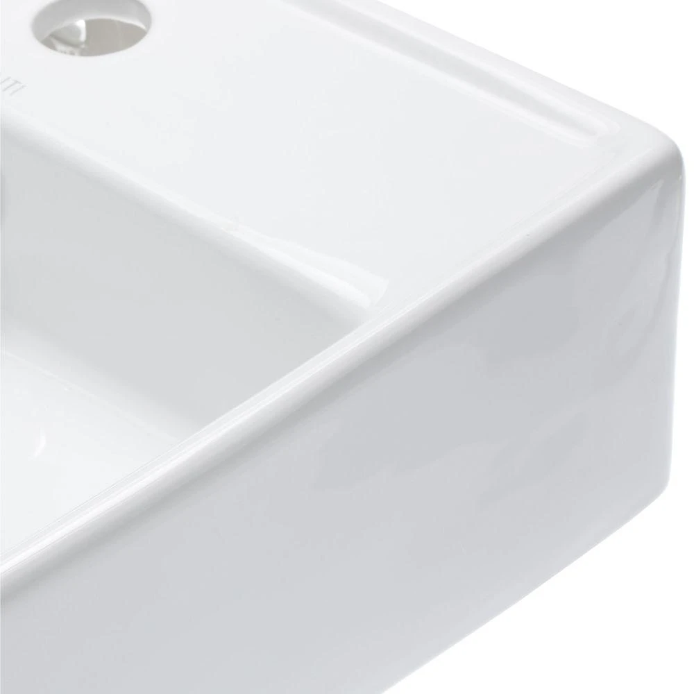 - Contemporary square design, wall-mounted sink, classic white porcelain