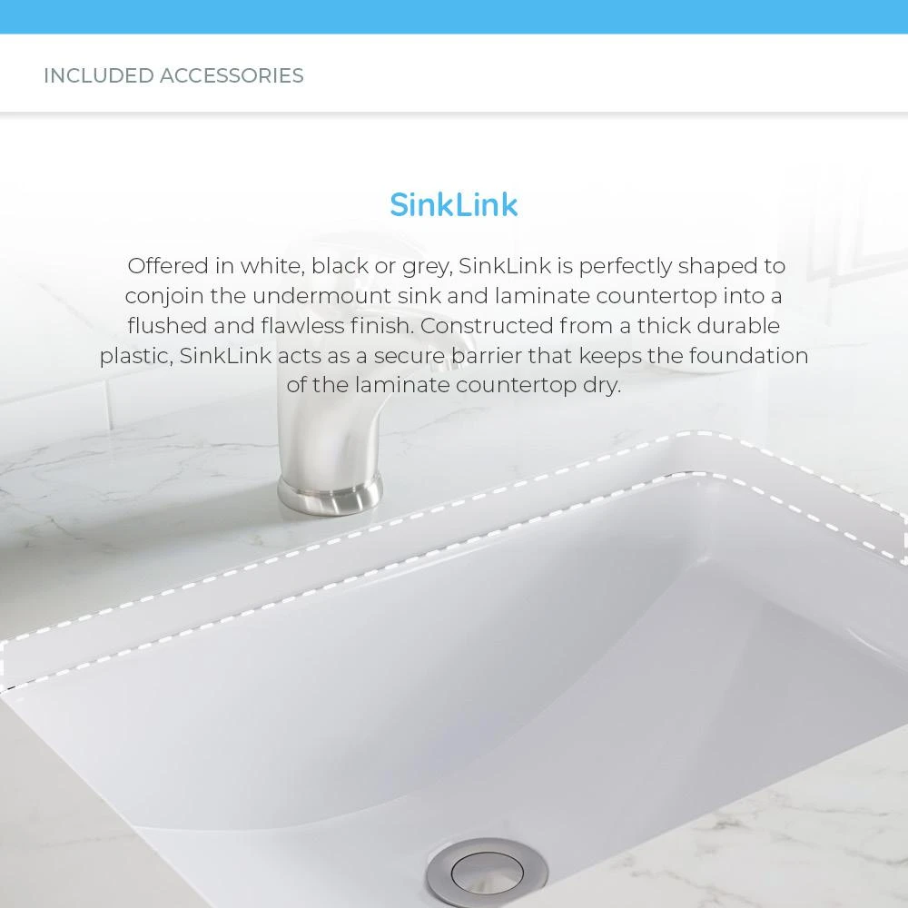 - Innovative installation – the added bonus of the included SinkLink allows this undermount sink to be installed into laminate countertops