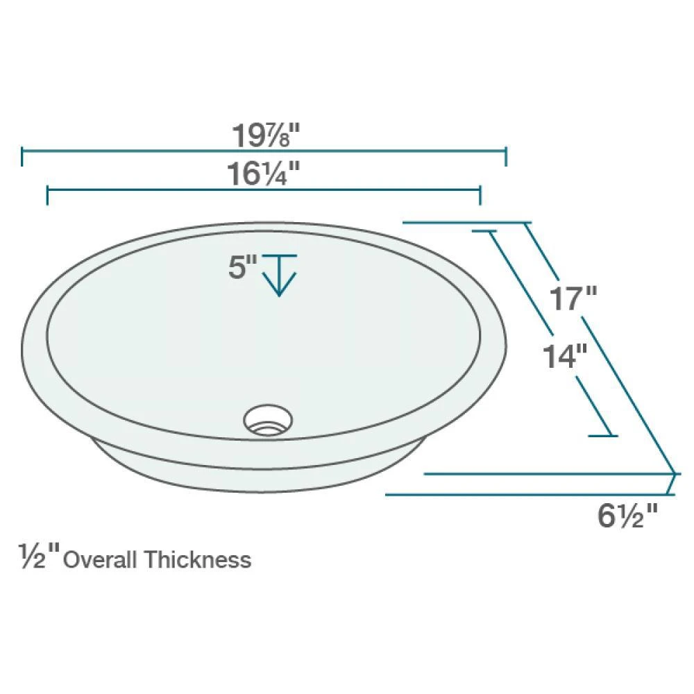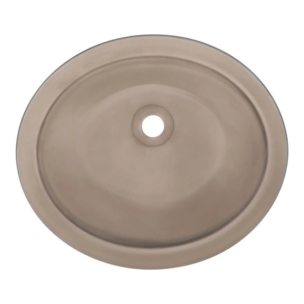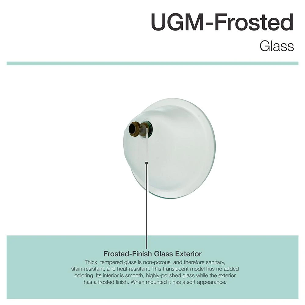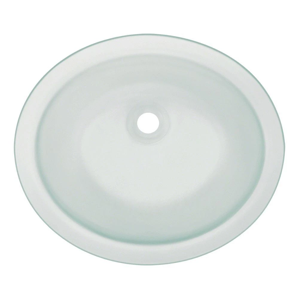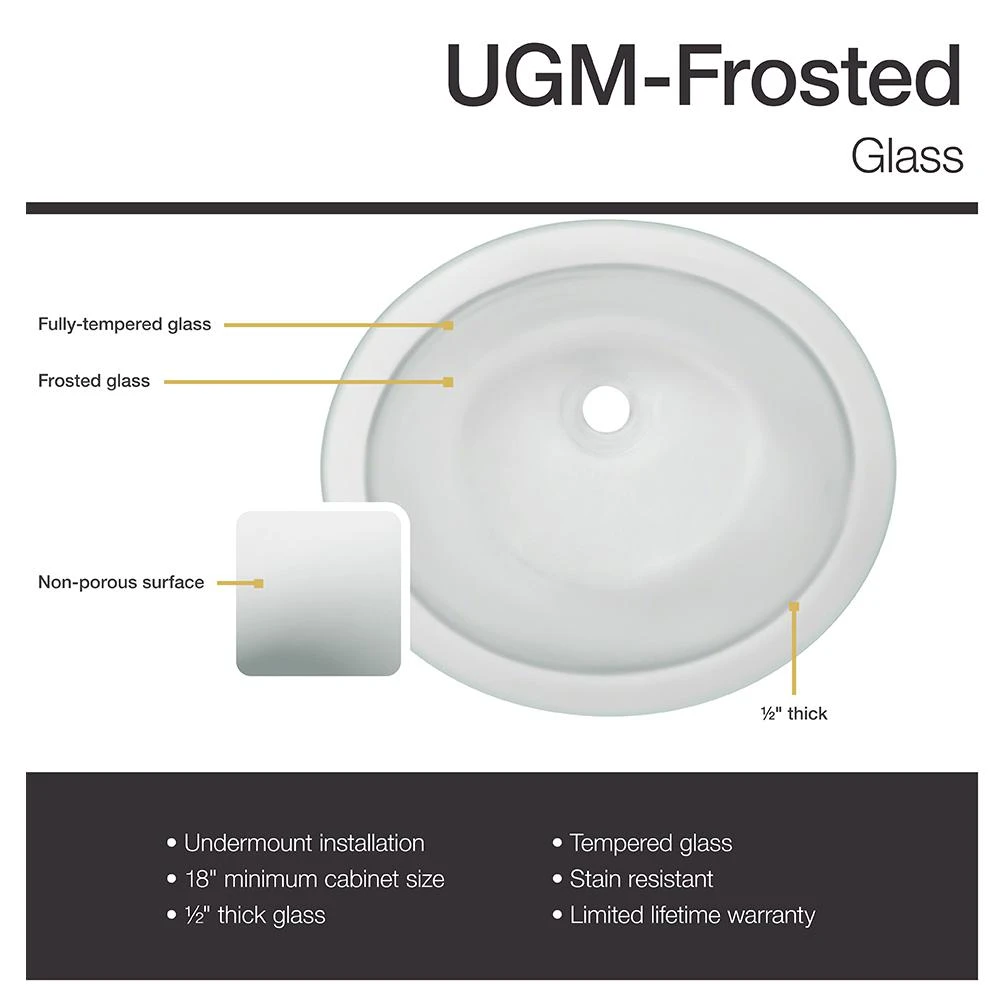 The MR Direct UGM-Frosted sink showcases the beauty of glass in a new fashion; under the counter. Under mounting a glass bathroom sink not only creates a sleek contemporary look; but also allows for more usable countertop space than a vessel. Created of fully-tempered frosted glass, the distinctive, oval UGM-Frosted can withstand higher temperatures without incurring damage. Its frosted surface provides an overall soft appearance, while its 1/2 in. thickness ensures strength and stability. With an overall measurement of 19-7/8 in. x 17 in. x 6-1/2 in., it will require a minimum-width cabinet of 21 in. This listing does not include any accessories.