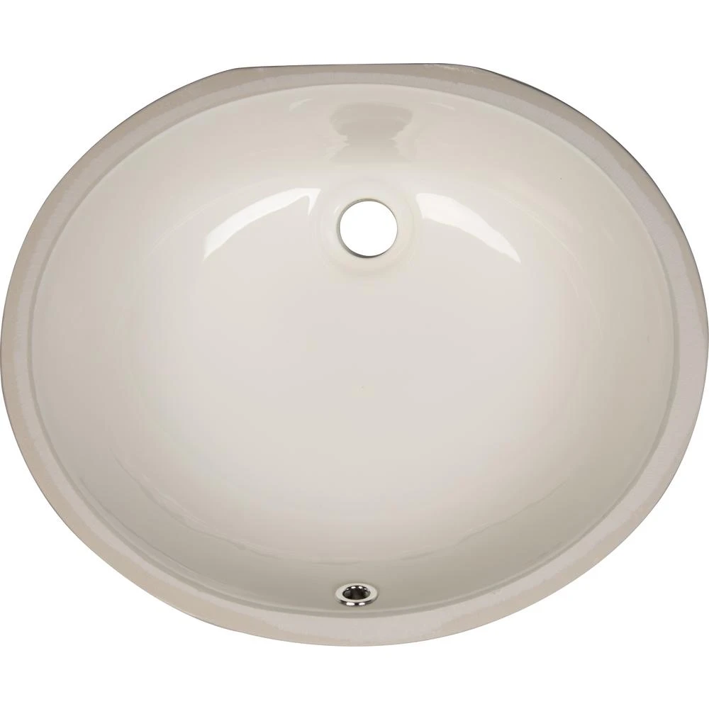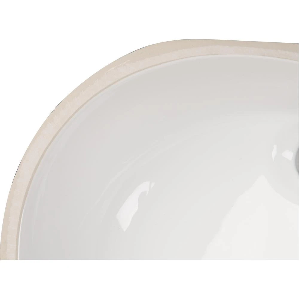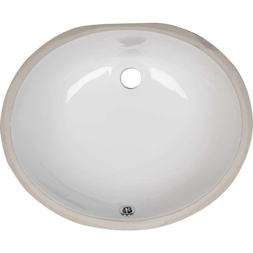 This white oval porcelain ceramic under-mount sink is made from true vitreous china which is triple glazed and triple fired to ensure your sink is durable and strong. Our elegant white color contains a yellow tint. Under-mounting a bathroom sink creates a sleek look and allows for more space on your countertop. The overall dimensions for the under-mount sink are 19-1/2 in. x 16 in. x 8 in. and require a 24 in. minimum cabinet size. This easy-to-clean sink combines the sleek look of an integrated basin with a timeless design that suits both traditional and modern bathroom decors.