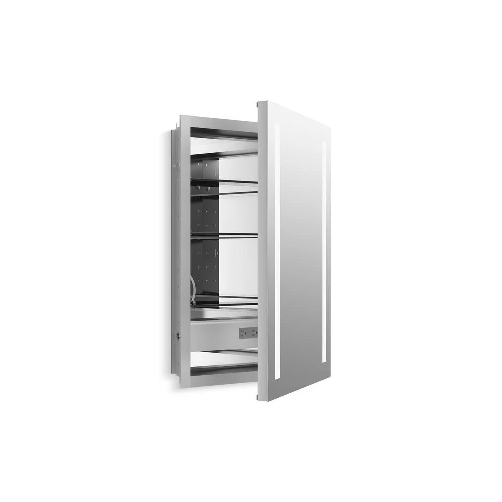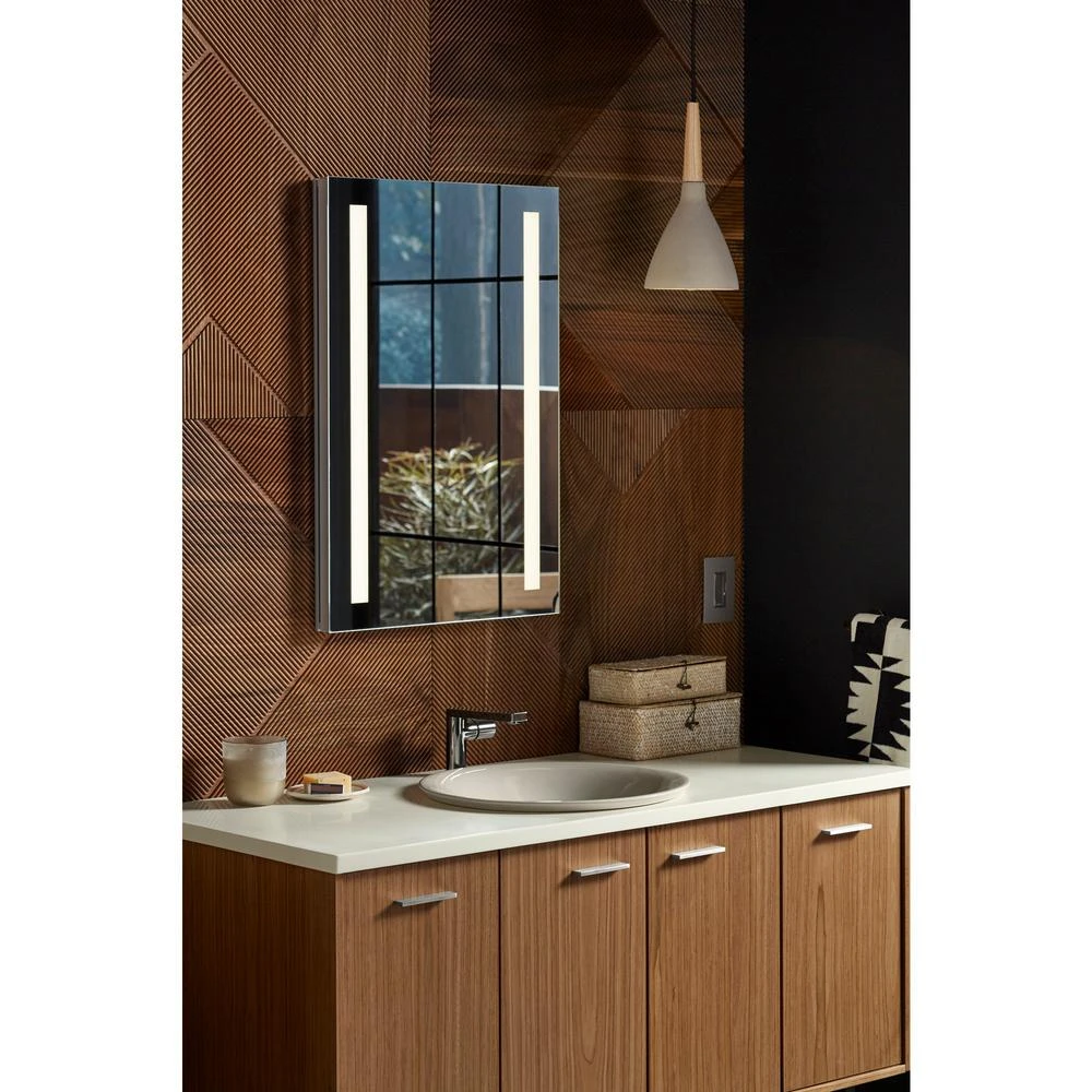 See yourself in a better light. KOHLER Verdera lighted medicine cabinets deliver optimally bright, even, and shadow less bathroom lighting that is exceptionally close to natural light. Pivoting side panels let you direct light exactly where you need it. Built-in electrical outlets and a pull-out magnifying mirror make daily grooming tasks easier than ever. Verdera lighted medicine cabinets coordinate with surrounds and side kits in the KOHLER Tailored vanity collection for a beautifully matched vanity set.