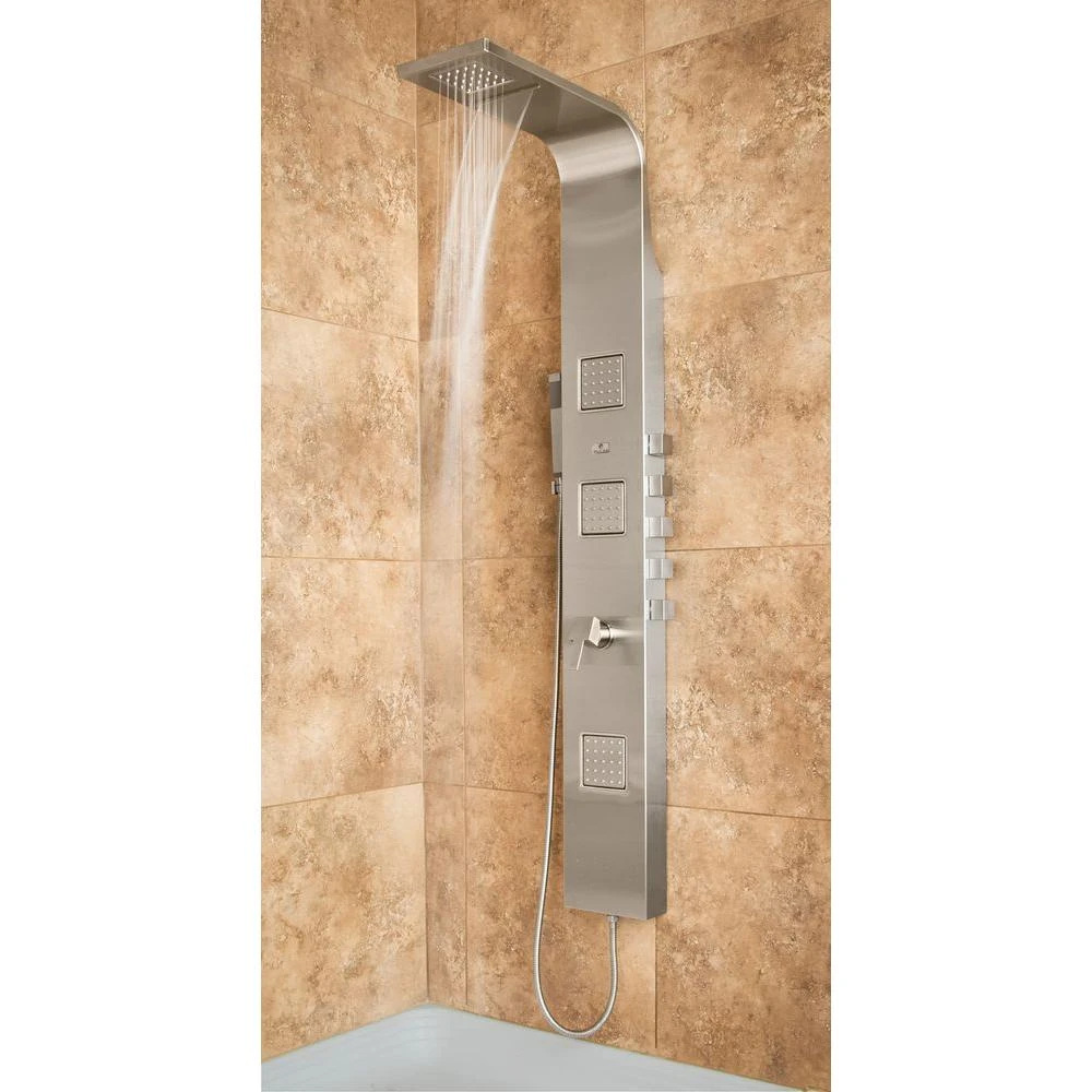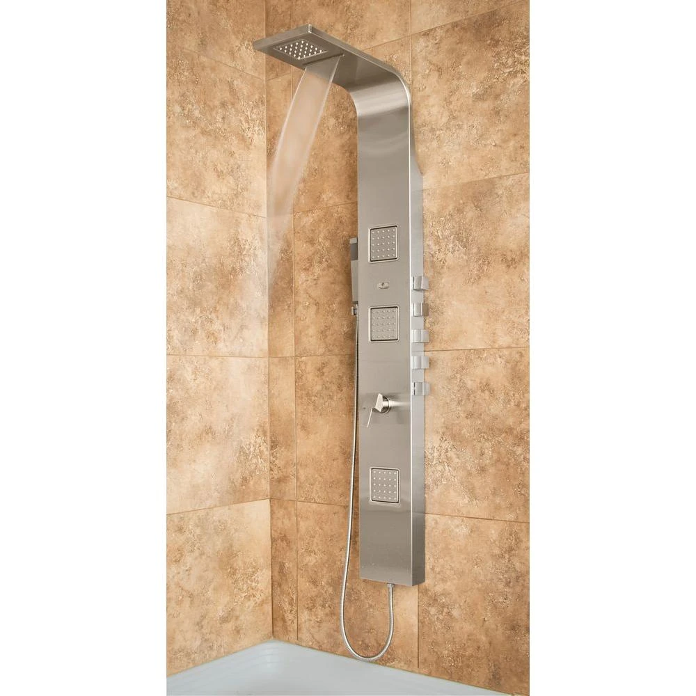 The Waimea ShowerSpa is sure to make waves with the all metal, brushed stainless steel construction. Wash your worries away with a unique cascading waterfall showerhead, a 6 in. rain showerhead, oversized body jets or powerful handshower. Distribute water pressure to a single function or any combination of features for a multitude of relaxing options. A perfect blend of feminine beauty and masculine build quality will satisfy any emotion, leaving you clean, crisp and ready to start your day.