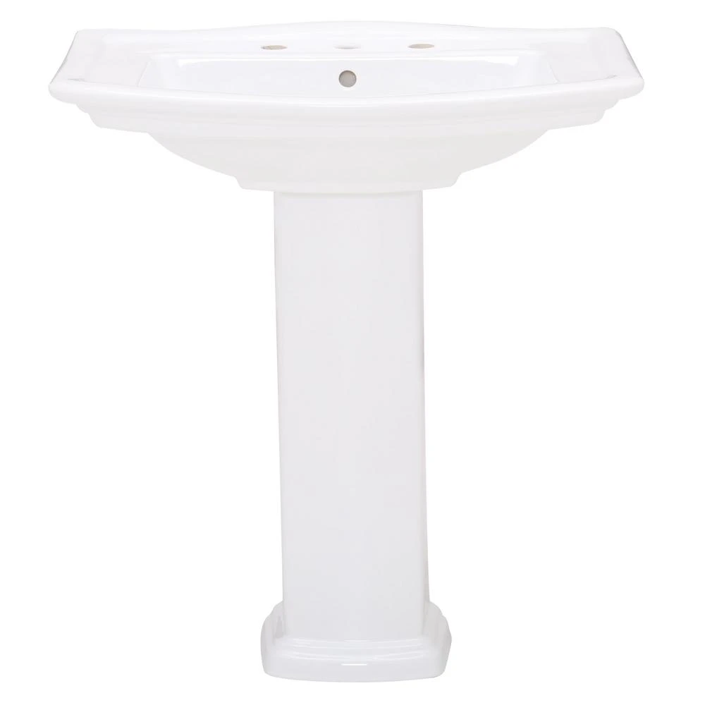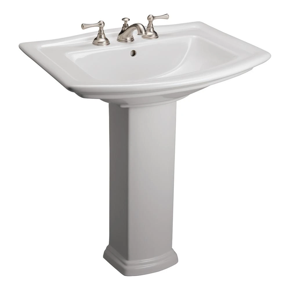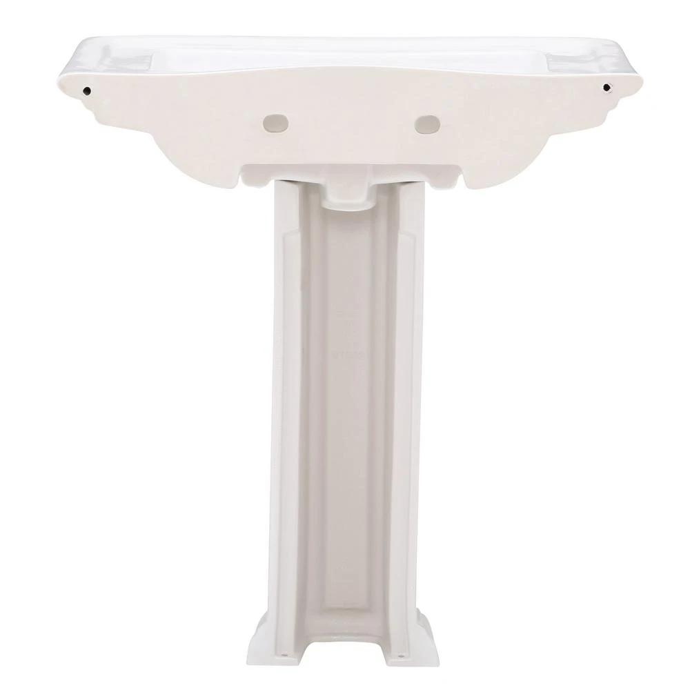 Washington is a classic pedestal lavatory sink that will remain both timelss and elegant. This pedestal imparts a stately and dignified look in a traditional style. The underside of the basin ledge and the base of the column are accentuated by horizontal ridges.