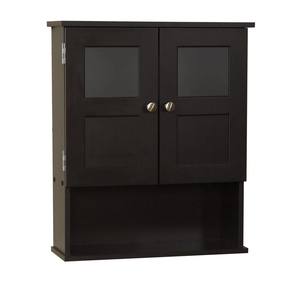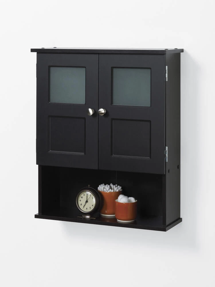 The Wall Cabinet creates valuable storage inside any bathroom. The cabinet has two shelves (one adjustable) behind its closed doors, and also has an open shelf for displaying decorative items. The cabinet is easy to assemble and install.